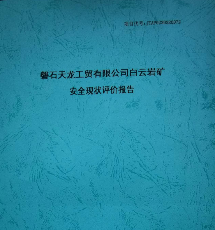 JTAP0220220072-磐石天龍工貿(mào)有限公司白云巖礦安全現(xiàn)狀評價項目