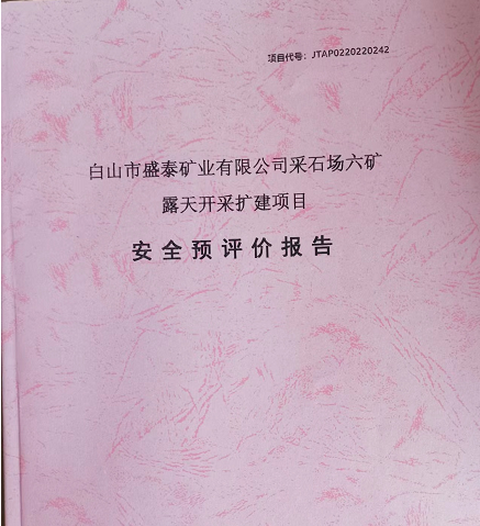 JTAP0220220242-白山市盛泰礦業(yè)有限公司采石場(chǎng)六礦露天開采擴(kuò)建項(xiàng)目安...