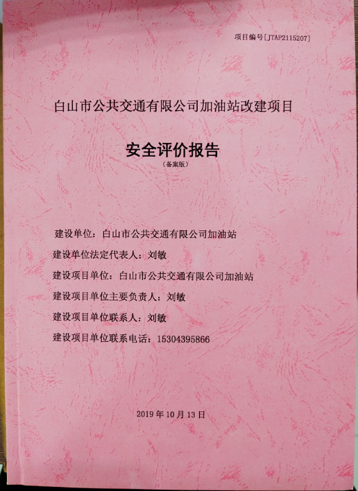 JTAP2115207--白山市公共交通有限公司加油站改造項(xiàng)目安全評(píng)價(jià)