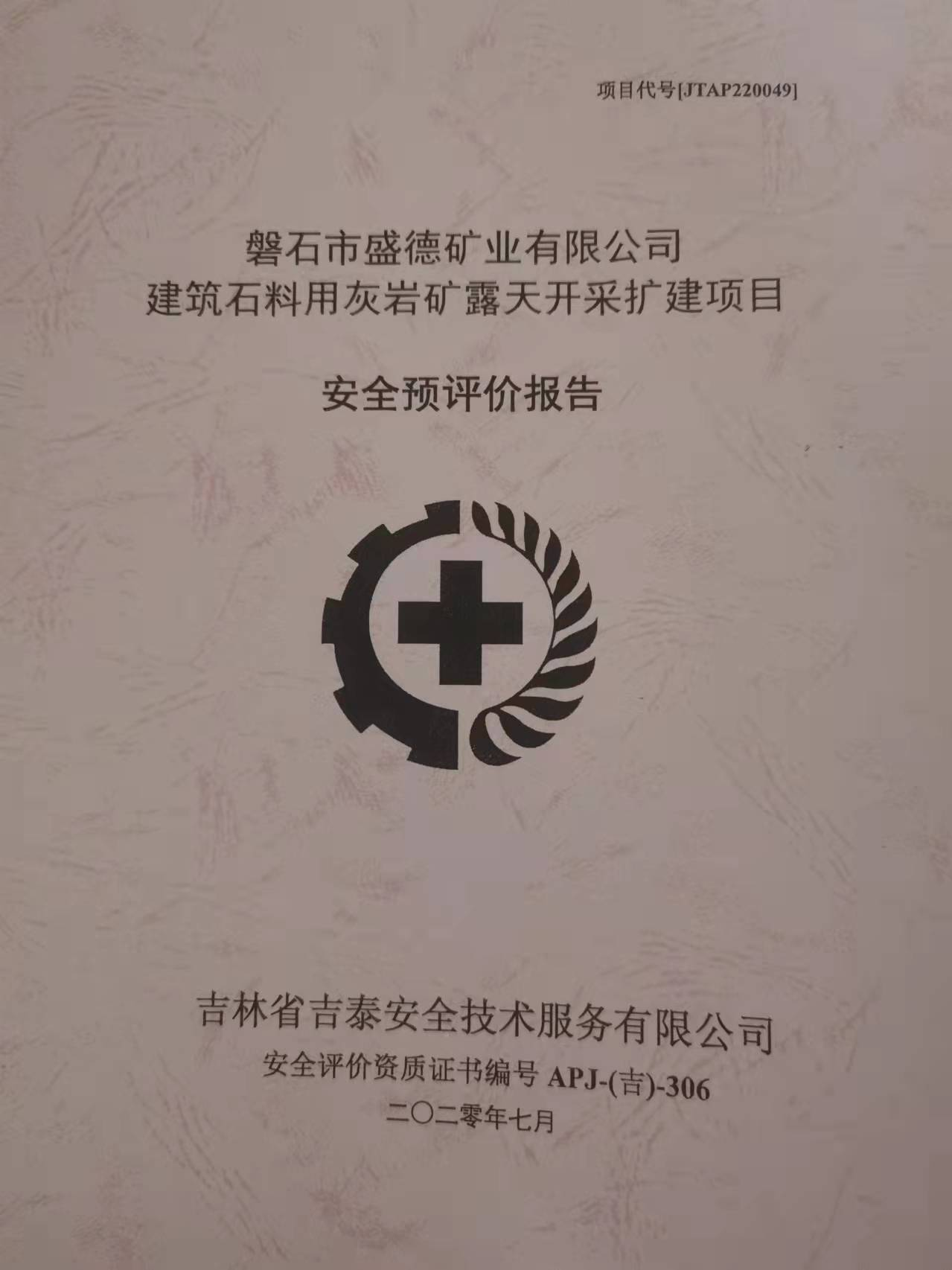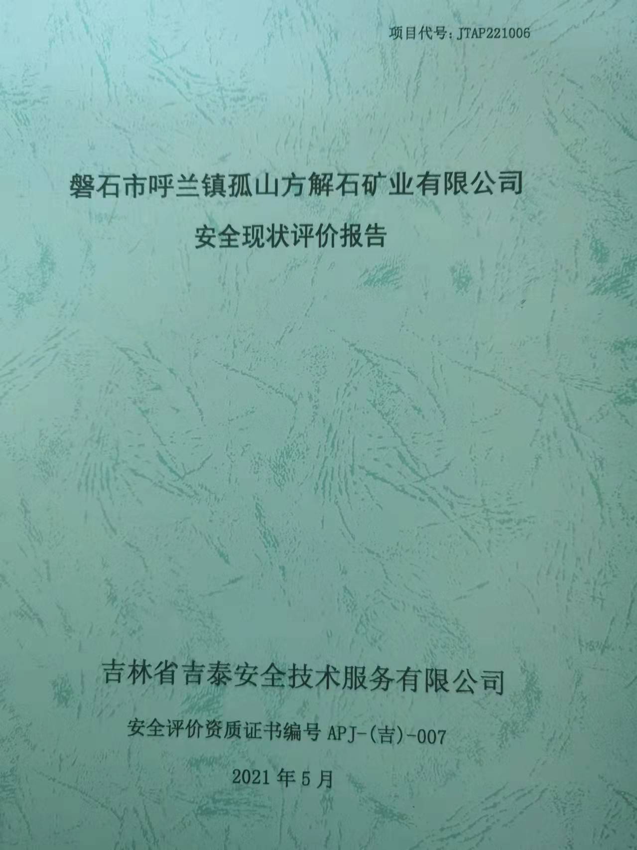JTAP221010--磐石盛源礦業(yè)有限公司冶金用白云巖礦安全現(xiàn)狀評(píng)價(jià)