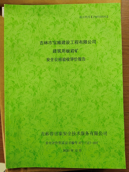 JTAP220035--吉林市寶順建設(shè)工程有限公司建筑用板巖礦驗(yàn)收