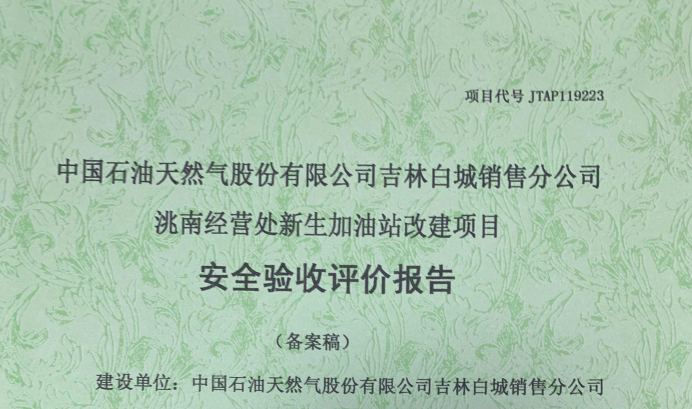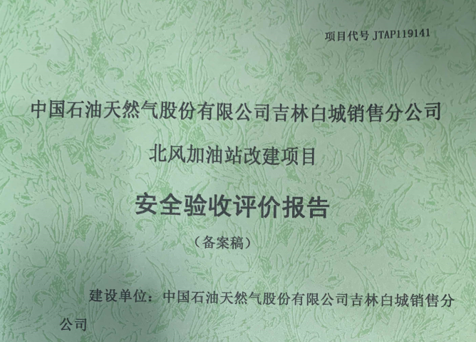 JTAP119262--長(zhǎng)春市金瀚姆加油站改擴(kuò)建工程(加油部分)安全驗(yàn)收評(píng)價(jià)