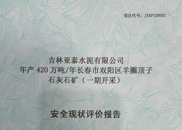 JTAP120002--吉林亞泰水泥有限公司年產(chǎn)420萬(wàn)t/年長(zhǎng)春市雙陽(yáng)區(qū)羊圈頂...