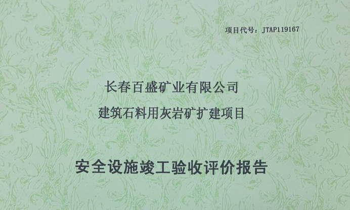 JTAP119167--長春百盛礦業(yè)有限公司建筑石料用灰?guī)r礦擴建項目安全設(shè)施竣工...