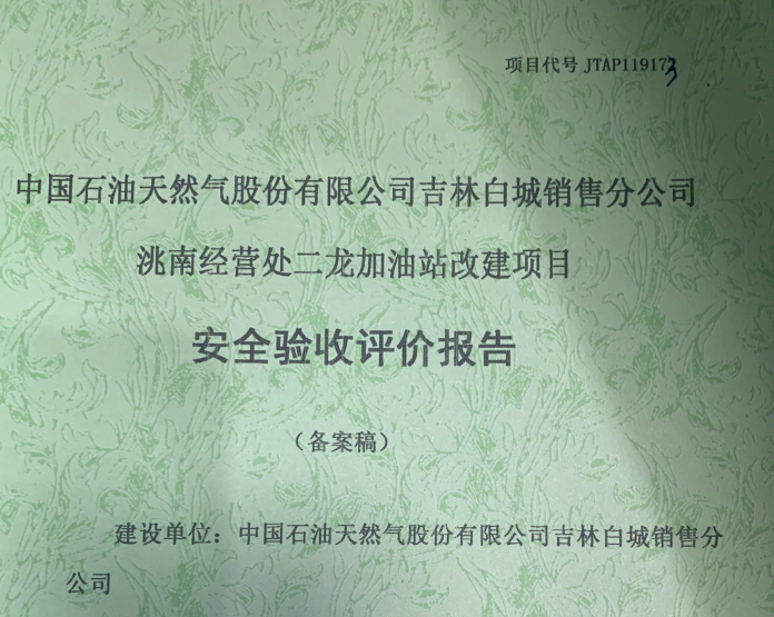 JTAP119341--吉林中油長(zhǎng)發(fā)能源發(fā)展有限公司長(zhǎng)春西新加油站安全現(xiàn)狀評(píng)價(jià)