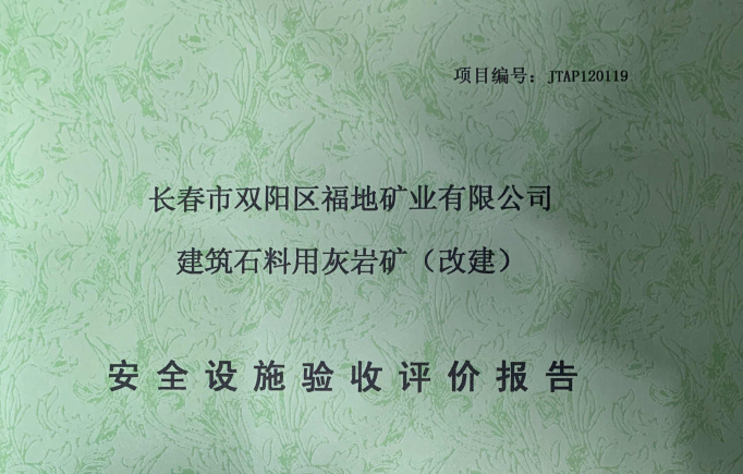 JTAP120119--長(zhǎng)春市雙陽(yáng)區(qū)福地礦業(yè)有限公司建筑石料用灰?guī)r礦(改建)安全...