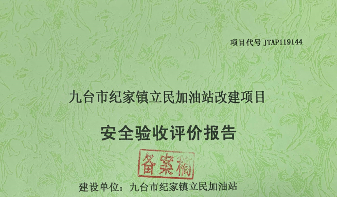 JTAP119144--九臺市紀家鎮(zhèn)立民加油站改建項目安全驗收評價