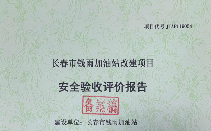 JTAP119054--長(zhǎng)春市錢雨加油站改建項(xiàng)目安全驗(yàn)收評(píng)價(jià)