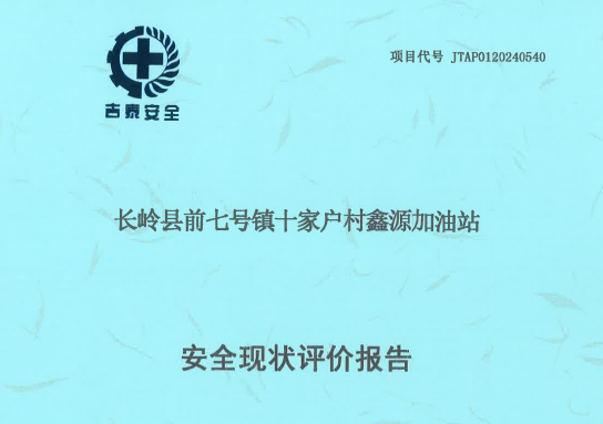 JTAP0120240540-長嶺縣前七號鎮(zhèn)十家戶村鑫源加油站安全現(xiàn)狀評價