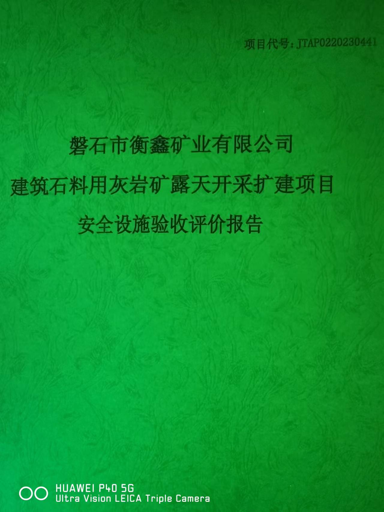 JTAP0220230441 -磐石市衡鑫礦業(yè)有限公司建筑石料用灰?guī)r礦露天開采擴...