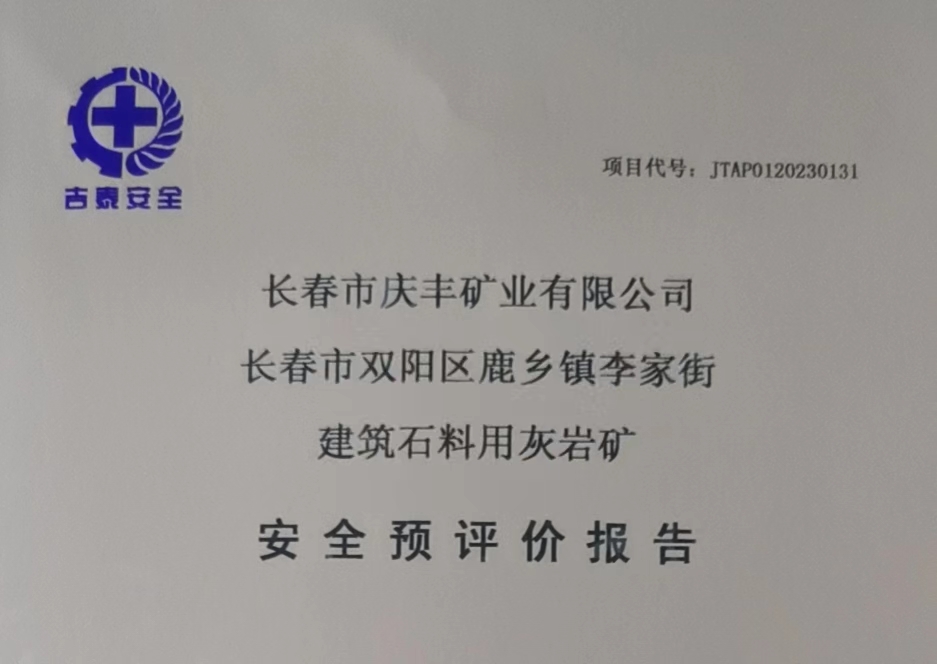 JTAP0120230131--長春市雙陽區(qū)慶豐礦業(yè)有限公司建筑石料用灰?guī)r礦安全...