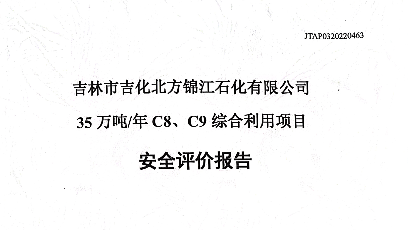 JTAP0320220463--吉林市吉化北方錦江石化有限公司35萬噸/年C8、...