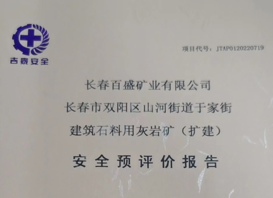 JTAP0120220719--長春百盛礦業(yè)有限公司建筑石料用灰?guī)r礦安全預評價