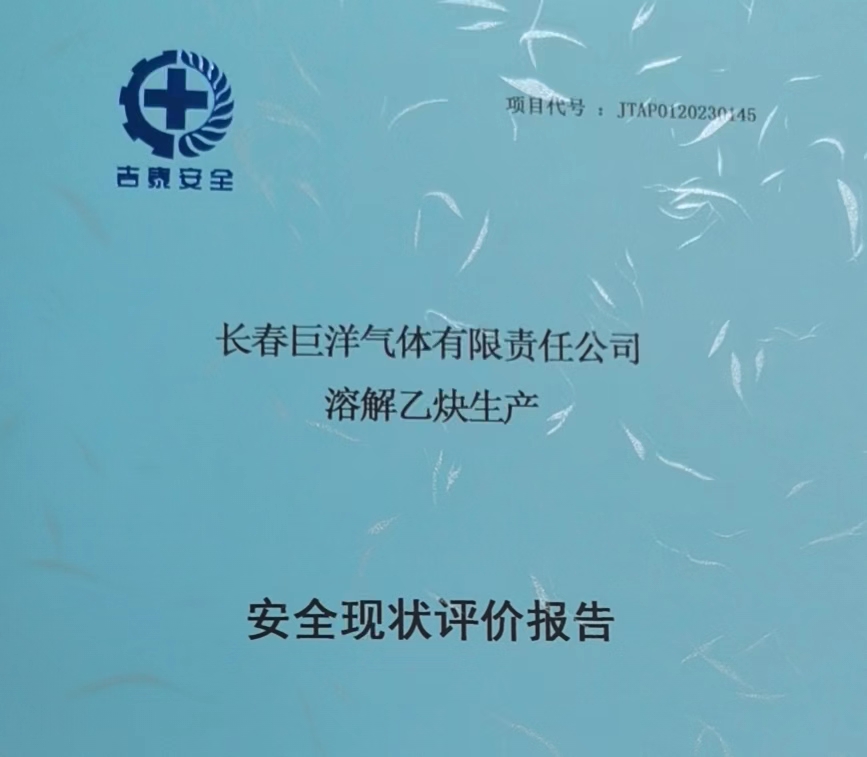 JTAP0120230145--長春巨洋氣體有限責任公司溶解乙炔生產(chǎn)安全現(xiàn)狀評價